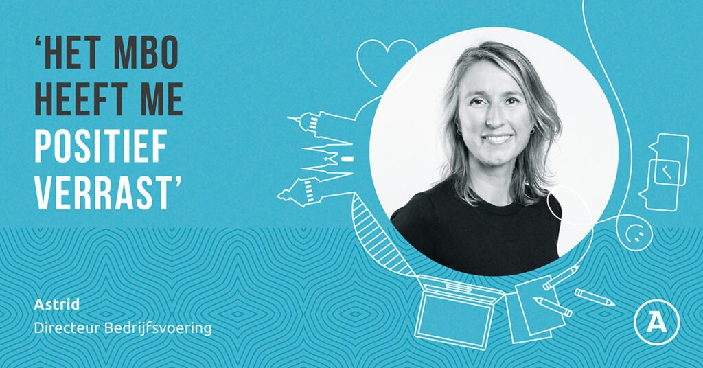 Dat het mbo zo veelzijdig zou zijn, had Astrid niet verwacht. “Ik werk als directeur bedrijfsvoering mee aan alles wat nodig is om de school te runnen”, vertelt ze. “Denk aan het faciliteren van onze gebouwen, ICT, catering, schoonmaak, beveiliging en roosters. In mijn rol help ik dus op meerdere gebieden en speelvelden het onderwijs een stukje verder. Dat is heel complex, maar ook heel interessant. Ik ben positief verrast.”