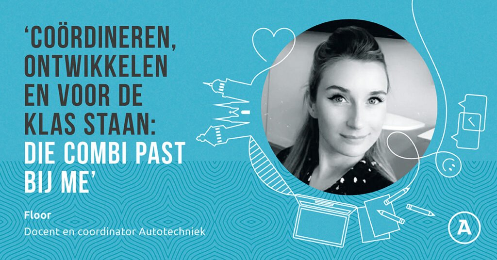 Floor leerde Aventus al op jonge leeftijd kennen: haar moeder werkte er namelijk. Hoewel ze van oorsprong maatschappelijk werker is, was ze toch geïnteresseerd toen er een functie voor een begeleidingsklas vrijkwam. Inmiddels werkt ze als docent en teamcoördinator bij Autotechniek. “Die combinatie is heel gaaf: je weet wat er speelt in de klas, maar mag ook coördineren, ontwikkelen en lijnen uitzetten binnen het team.”