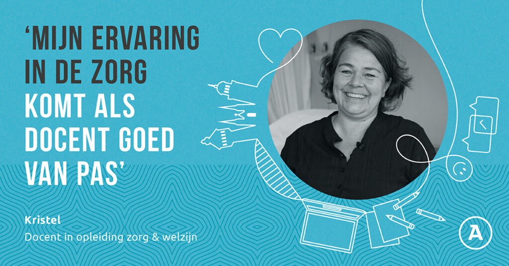Dat lesgeven was één van de grootste uitdagingen toen ze de overstap maakte vanuit de zorg. “Soms doe ik maar wat en kijk ik dan wel of het werkt”, lacht Kristel. “Het is voor mij ook een leerproces: ik zeg soms letterlijk tegen studenten dat ik zelf ook nog veel moet leren. Gelukkig krijg ik die ruimte hier ook volop.”