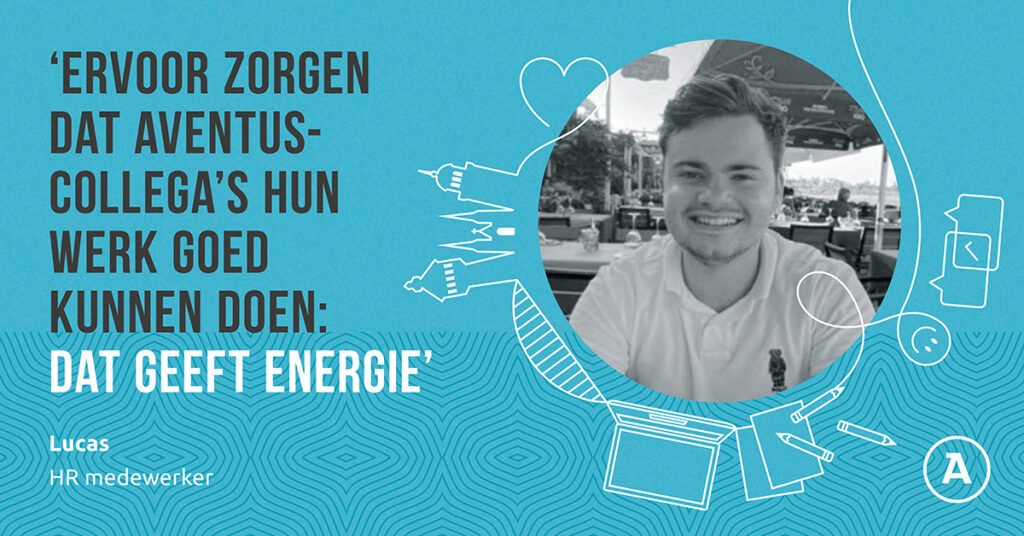 Als íemand dynamisch werk heeft, is het Lucas wel. Als HR-medewerker komt hij met veel Aventus-collega’s in contact om ervoor te zorgen dat ze alle middelen hebben die ze nodig hebben om hun werk goed en veilig uit te voeren. “Dat vind ik heel belangrijk. Tijdens mijn studie speelden docenten een grote rol, dus ik weet hoe belangrijk het is om ze de juiste handvatten te geven.”
