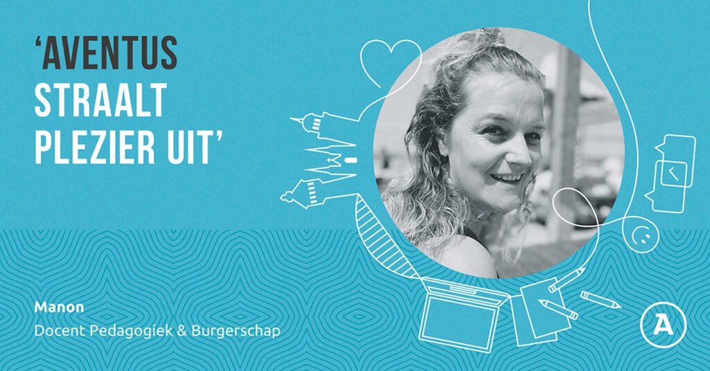 Manon begon haar opleiding in de pedagogiek om de nieuwe generatie op te leiden. Die insteek neemt zij mee als docent bij Aventus. “Ik vind het belangrijk om studenten op te leiden tot professionals in hun vak, maar ook goede burgers in de maatschappij. Dat maakt dit werk mooi.” Daarbij is het volgens Manon waardevol om studenten actief aan de slag te laten gaan met de stof. “Ik laat de studenten graag zelf ervaren, zelf zoeken naar antwoorden. Dus niet alleen theorie, maar zelf aan de slag gaan. Zo leren zij eigen keuzes maken, omgaan met anderen en kritisch denken. Er is veel ruimte voor respectvolle en inhoudelijke discussie en debat. Daarbij daag ik studenten uit om juist een andere mening aan te nemen.”